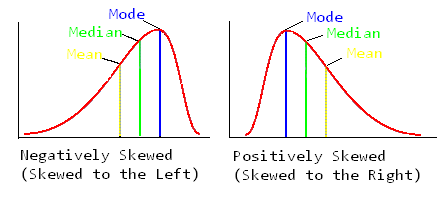 Bij een unimodaal histogram kan de scheefheid (skewness) bepaald worden aan de hand van de posities van het rekenkundig gemiddelde en de mediaan. Bij een perfect symmetrisch histogram zijn deze twee statistieken gelijk aan elkaar. Bij een links scheef histogram geldt dat het gemiddelde kleiner is dan de median (die op zijn beurt kleiner is dan de modus). Bij een rechts scheef histogram is de modus kleiner dan de mediaan, die zelf kleiner is dan het rekenkundig gemiddelde. De reden hiervoor is dat het rekenkundig gemiddelde gevoeliger is voor extreem grote of extreem kleine waarden dan de mediaan. Op basis hiervan leidde Pearson een scheefheidsmaatstaf af: