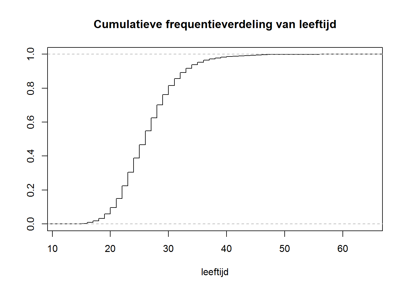 main='Cumulatieve frequentieverdeling van leeftijd',