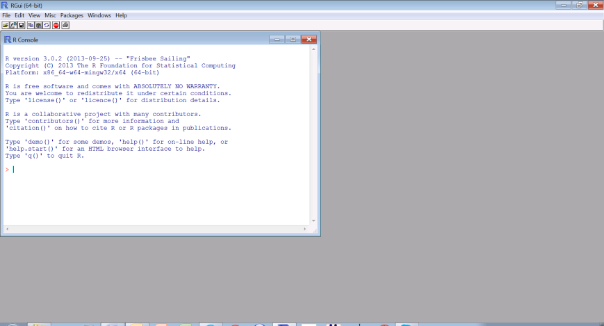 Doorheen deze cursus en het vak Biostatistics in de Master opleiding maken we gebruik van een pakket om alle statistische analyses uit te voeren en figuren te maken. Dit pakket is gratis te downloaden van op volgende locatie. Wanneer je het bestand hebt opgehaald kan je het openen zodat het pakket geïnstalleerd wordt. Klik op het R-icoon en het volgende venster zal openen: