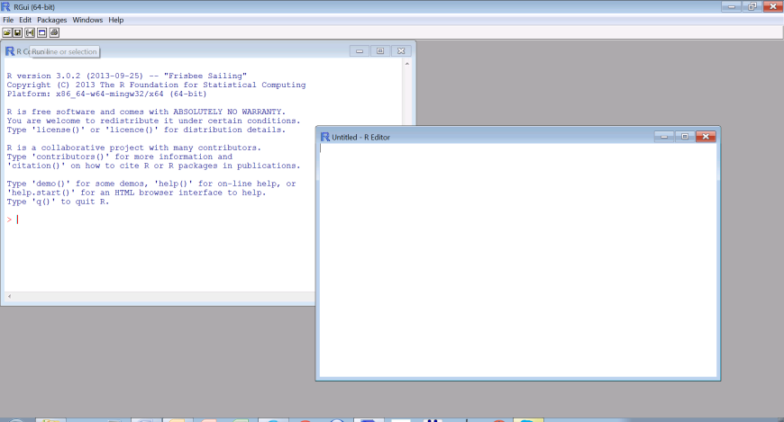 Dit nieuwe venster is niet meer dan een eenvoudige tekst editor waarin je code en commentaren kan intikken en bewaren (want als je R afsluit ben je anders al je werk kwijt!). Tik onderstaande code in je nieuwe script: