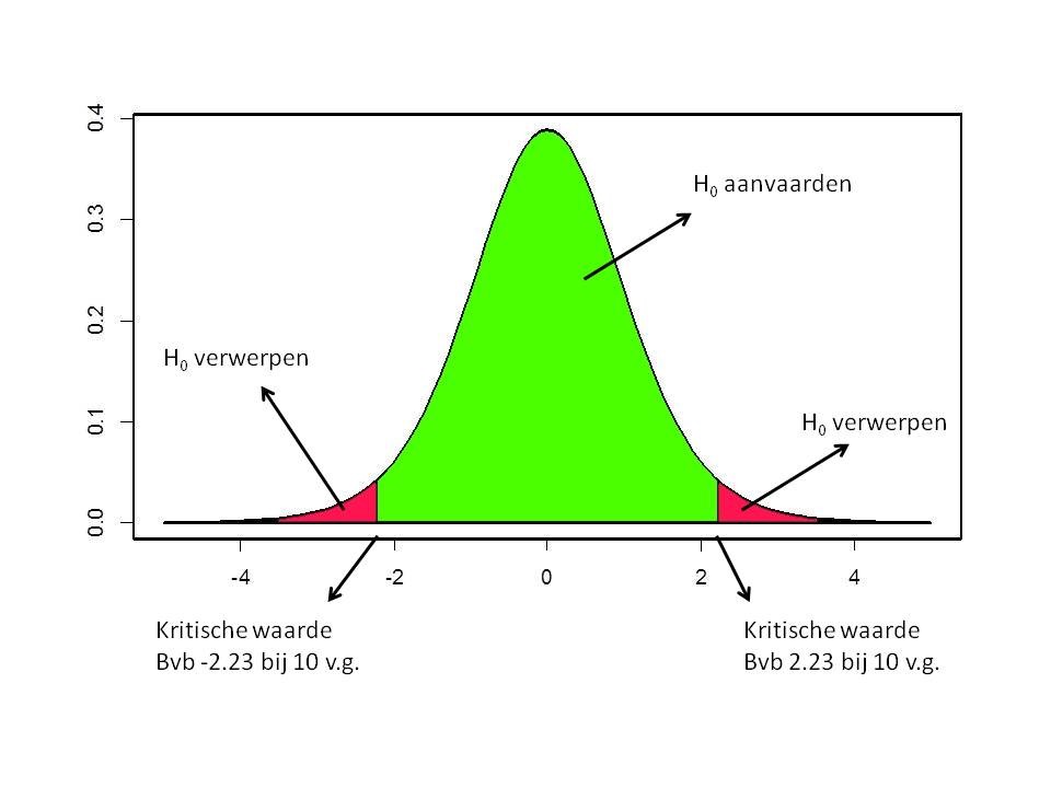 We kunnen dit als volgt grafisch voorstellen voor een tweezijdige tests:
