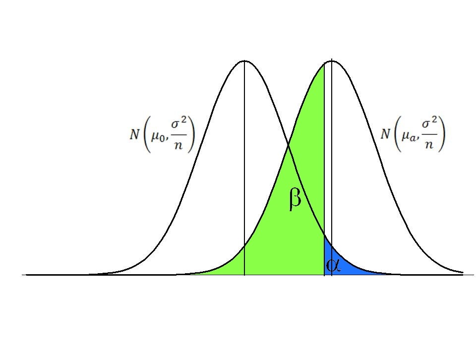 In de eerste plaats hangt \(\beta\) af van het werkelijke verschil tussen \(H_0\) en \(H_a\) . Dit kan direct duidelijk gemaakt worden aan de hand van een voorbeeldje. Wanneer je het gewicht van muizen en olifanten wil vergelijken, dan is het voldoende om 2 olifanten en 2 muizen te wegen, en het verschil zal altijd statistisch significant zijn. Dat is omdat het werkelijke verschil, of het verschil waarin je geïnteresseerd bent zeer groot is.